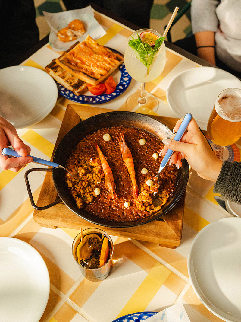 L’Anxova is an informal tapas bar that celebrates Spanish art and design and specialises in Catalan cuisine with pinchos, small plates, vermouth and beer served from lunch to late night.